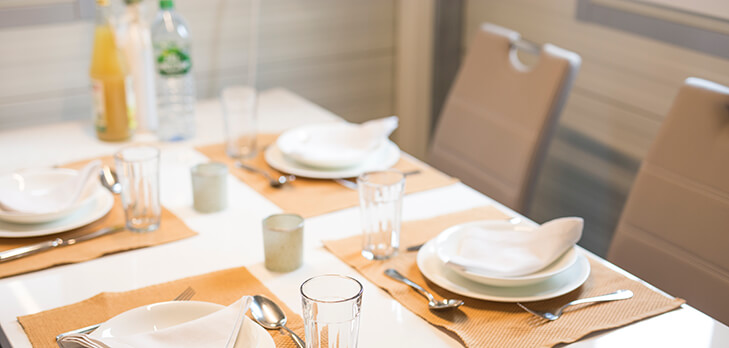 Ergänzungsoption: Auf Wunsch kann die Wohncontainer-Küche mit den gängigen Kochutensilien sowie Geschirr für 4 Personen ausgestattet werden.